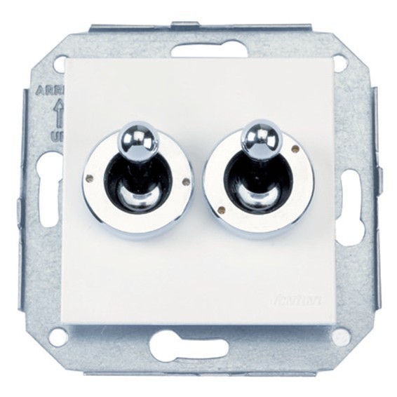 Выключатель тумблерный 2-клавишный кнопочный Fontini F37, хром/белый, 67345262